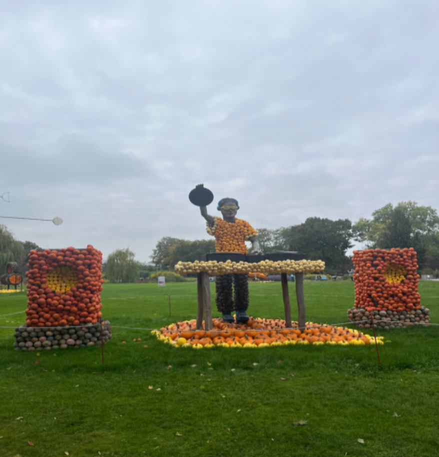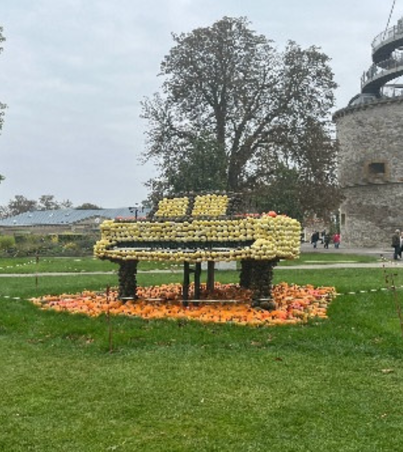 Das aktuelle Herzstück war die Kürbisausstellung „Kürbissynphonie im egapark“ die ganz im Zeichen der Musik stand. Dabei waren 11 beeindruckende Kürbisfiguren in Form von Musikinstrumenten, Musikern und Musikgegenständen zu sehen. Diese Skulpturen luden zu vielen schönen und lustigen Fotos ein.